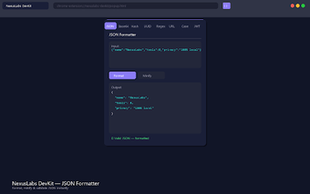 NexusLabs DevKit es una extensión gratuita para Chrome que agrupa ocho herramientas esenciales para desarrolladores en un solo popup. Esta herramienta permite formatear, codificar, decodificar, hashear y validar datos sin necesidad de salir de la pestaña actual, facilitando así tareas comunes de desarrollo web. La interfaz moderna y de diseño limpio permite un acceso rápido a cada función, optimizando el flujo de trabajo del usuario.